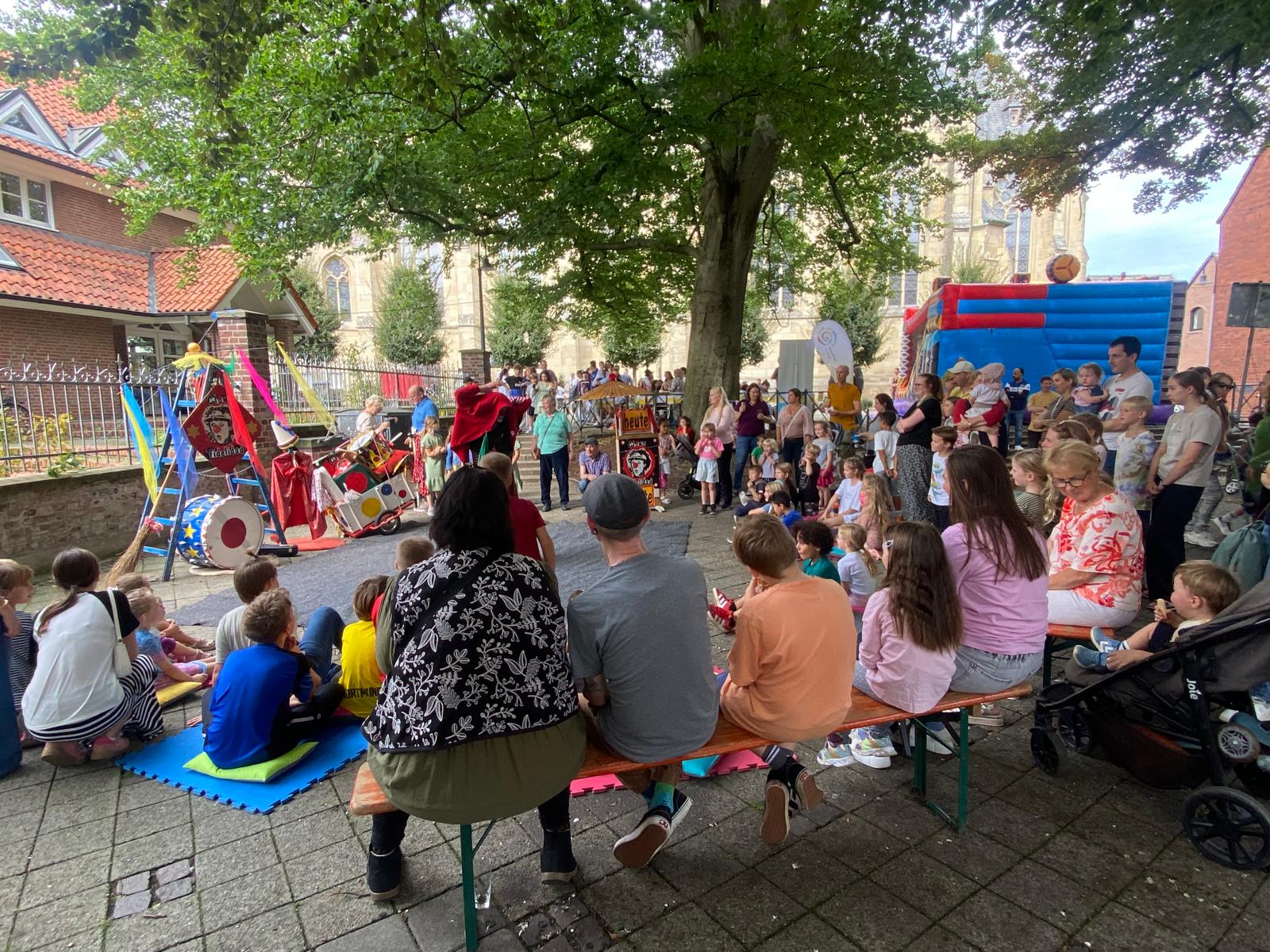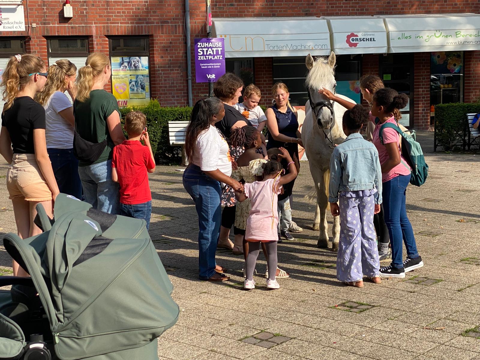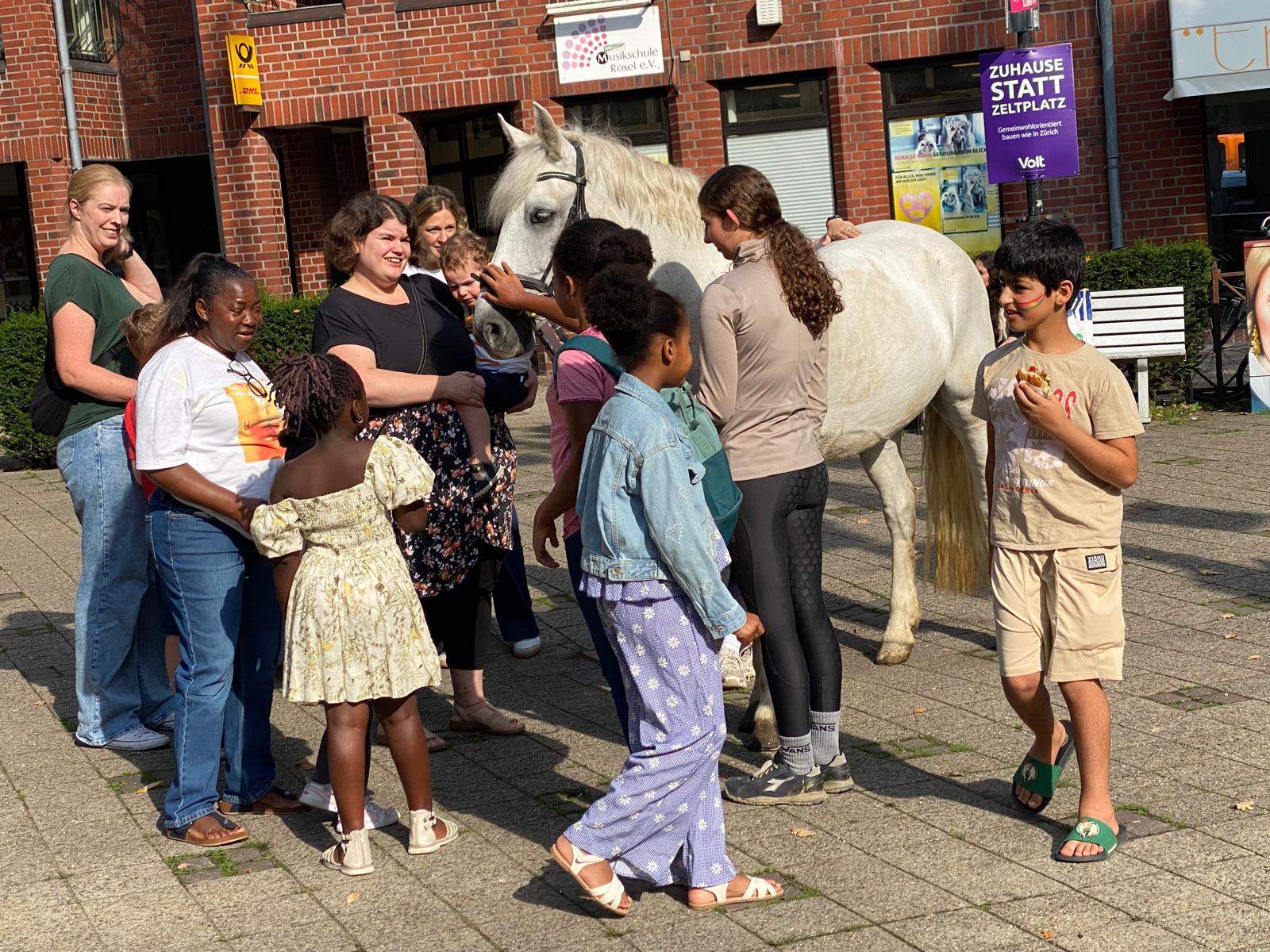 Bei strahlendem Sonnenschein wurde generations- und kulturübergreifend im Herzen Roxels gefeiert. Köstliche Falafelbrötchen, Manakish, traditionelle Bratwurst, persische Tee- und arabische Kaffeespezialitäten sowie eine überwältigende Kuchenauswahl sorgten dafür, dass niemand hungrig blieb. Unterschiedliche musikalische Beiträge zauberten ein internationales Flair auf den Platz. Beim „Roxelquiz“ kam man miteinander ins Gespräch, beliebt bei den Kindern waren das Wurf- und Angelspiel, das Ponystreicheln sowie eine Hüpfburg. Unermüdliche und kreative Helferinnen verschönerten kleine und große Fans mit Kinderschminke und bunten Zöpfen. Ein Höhepunkt und Magnet war der Auftritt von Clown „Fidelidad“ alias Wolfgang Konerding. Der bekannte Künstler verstand es, ausnahmslos allen Zuschauenden ein Lächeln zu entlocken.