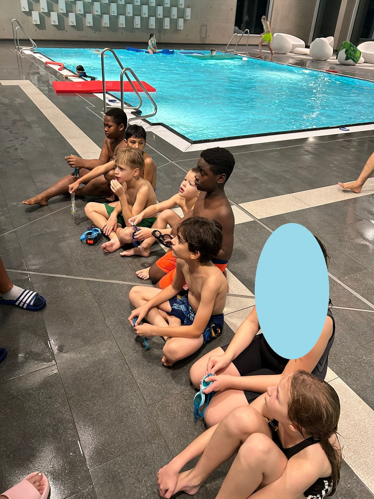 Aus einer anfänglichen Ferienaktion hat sich im Laufe der letzten beiden Jahre ein regelmäßiger Schwimmnachmittag an zwei Tagen in der Woche entwickelt. An einem Tag fahren die mittlerweile sicher schwimmenden Kinder in Begleitung mit dem Bus nach Münster ins Hallenbad, die kleinen Kinder, die noch nicht schwimmen können fahren an einem anderen Tag mit einer eins zu eins Betreuung ins Südbad um Spaß im Wasser zu haben und dabei nebenbei das Schwimmen zu lernen.